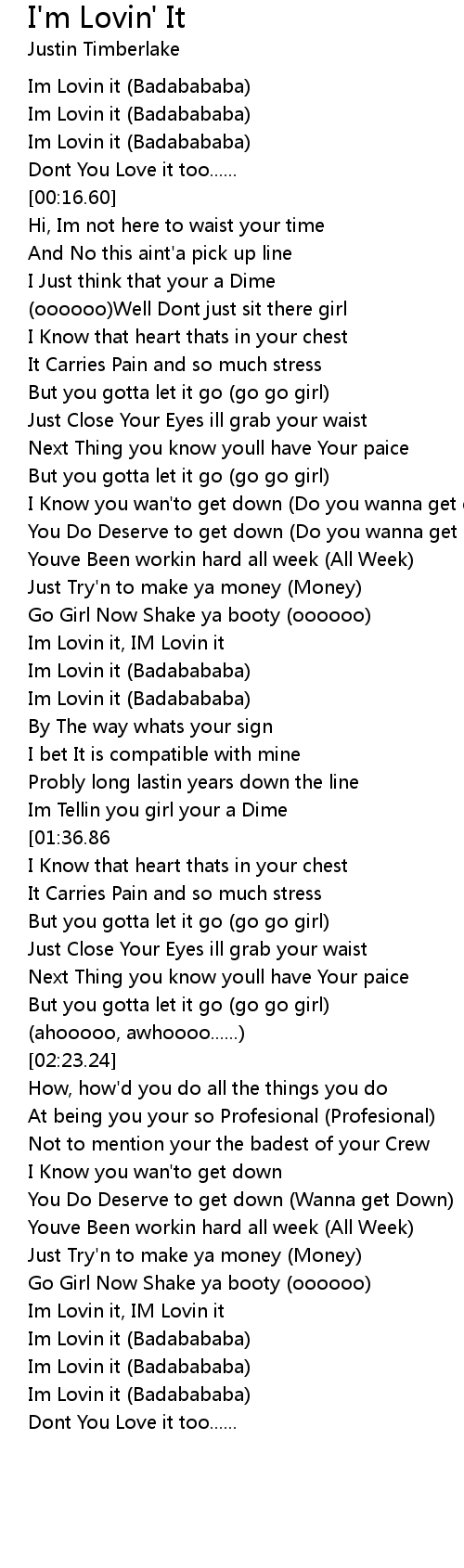 Download mcdonald's i'm lovin' it logo. Mcdonald's logos svg, i'm lovin' it. Logos that start with m, mcdonalds i m lovin it logo, mcdonalds i m lovin it logo black and white, mcdonalds i m lovin it logo png, mcdonalds i m lovin it logo transparent. 💯 check out more similar docs on this. Download free mcdonald's i'm lovin' it vector logo and icons in ai, eps, cdr, svg, png formats. Oct 30, 2019 · in 2003, justin timberlake helped launch an ambitious new mcdonald's marketing campaign. Nov 21, 2016 · ba da ba ba ba! Aug 14, 2018 · solving the mysterious truth behind mcdonald's jingle, ba da ba ba ba... Old and new logos svg, eps, png.
